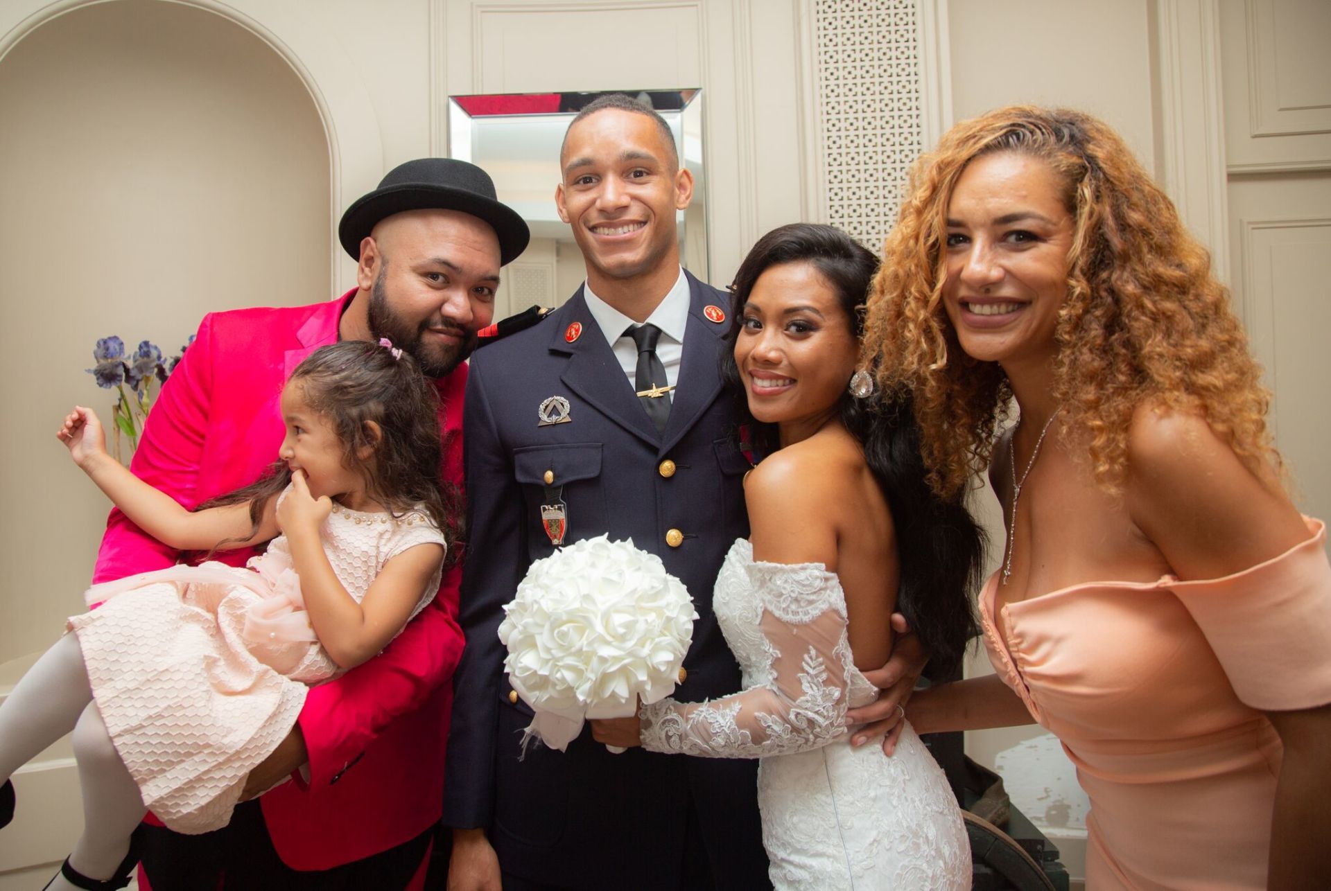 La mariée brillait dans sa magnifique robe et Alexandre en uniforme de pompier de Paris.